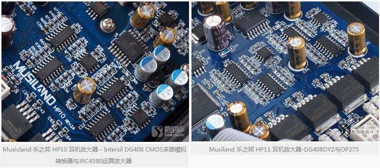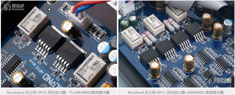 其实仔细对比两者,会发现两者的主要区别是音色的差别,HP11偏温暖松软,听感更为柔顺,而HP10则中性硬朗一些,瞬态方面略微占优,理论差一倍的驱动力反而没有形成明显的短板,原因可能是这几款耳机对驱动力的要求HP10已经能满足,也许600欧的耳机可能会有显著差别,但遗憾的是,我们手头并没有这种高阻耳机。HP10、HP11的前级放大不同,分别为JRC4580和OP275,而这两颗运放本身的特点就是一颗中性一颗偏暖,这应该才是两者声音不同的最大原因。