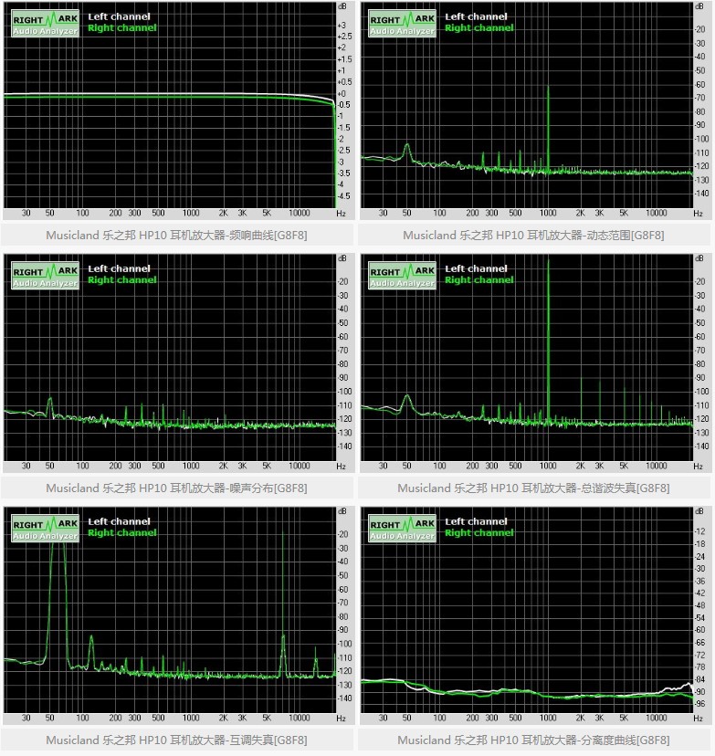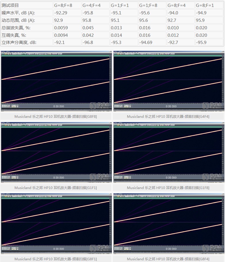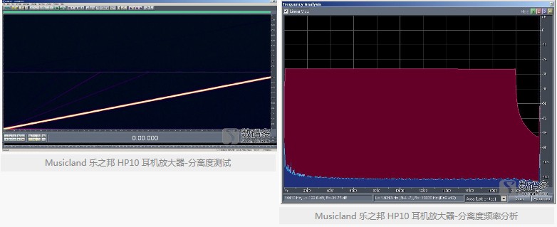 关于HP10的客观测试,我们还是选用专业级声卡录入的形式,结合常见的分析方式,提供直观的测量结果。警告:民用声卡用户请勿尝试这种方式测试,我们无法确保信号过载时不会对声卡产生伤害。这种方式测试有其局限性,它与实际使用有一定差异,实际使用时会有不同的负载。但它反映的数据依然有参考性,尤其对左右声道的平衡性、分离度等指标的分析,能更加直观。