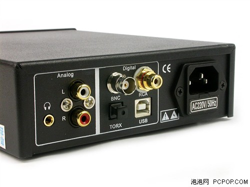 SVDAC05的接口都集中于产品的背部,输入端采用BNC(同轴)、RCA(同轴)、TORX(光纤)和USB输入。采用USB输入时,SVDAC05将作为一款外置声卡使用。输出采用了RCA左右声道输出,耳机输出采用了