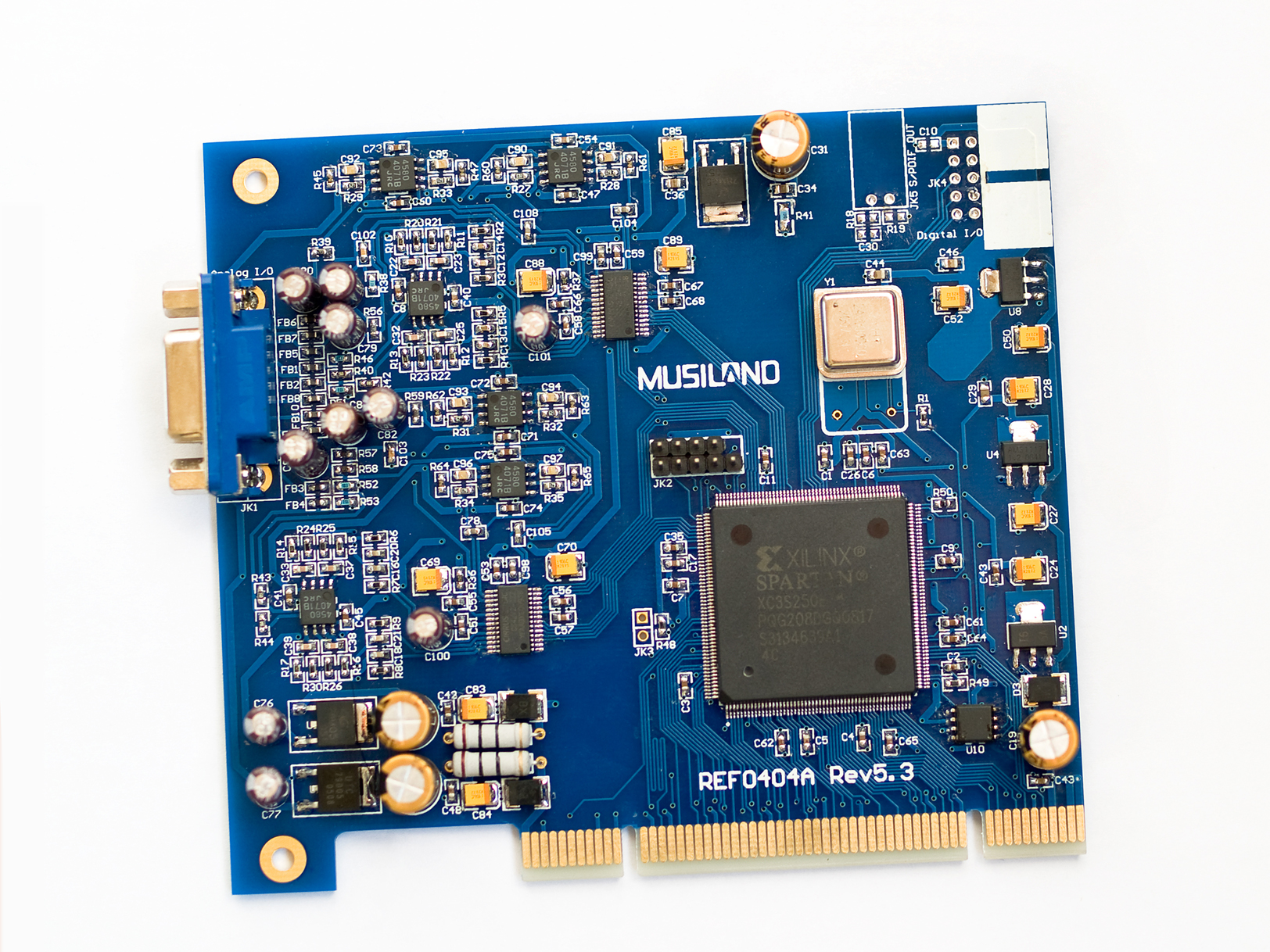SHINE24-HD PCI高清音频芯片组内部集成精密的时钟发生电路,加载专业时钟合成算法时,借助XILINX FPGA内部的DCM(时钟管理模块)产生的音频时钟,用来还原或者录制声音,谐波失真接近人类的听觉极限。