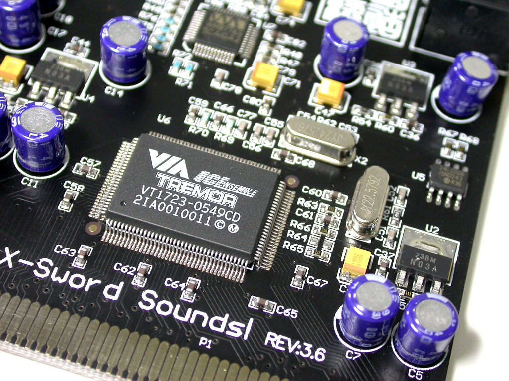 辕2496声卡采用了双晶振时钟源设计,配合威盛Envy24专业音频控制芯片,完全避开了采样率转换(SRC)过程,最大程度的保证了音频回放的保真度。