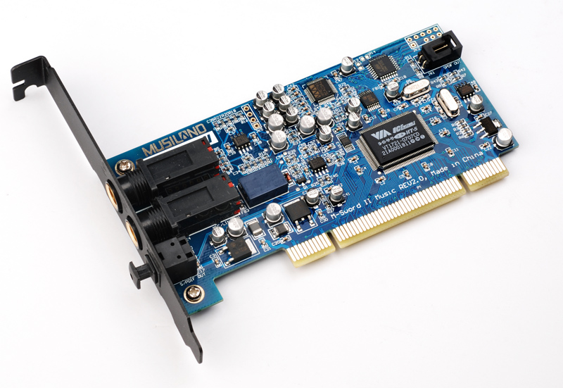 乐之邦M-Sword II Music PCI声卡产品是面向高质量音乐欣赏、游戏以及其它家庭娱乐用途的PCI声卡。本产品采用了威盛Envy24专业音频控制芯片以及Wolfson 高级音频编解码器,配以乐之邦精湛的电路设计,使得本产品拥有高水准的音效保真度和若干最佳特性。使用本产品连接优质立体声音响系统和AV音响系统,您可以领略到高保真素质的音乐效果以及极具震撼力的DVD电影音效和游戏环境音效。