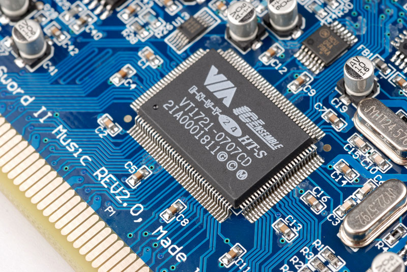 M-Sword II Music声卡采用了双晶振时钟源设计,配合威盛Envy24专业音频控制芯片,完全避开了采样率转换(SRC)过程,最大程度的保证了音频回放的保真度。