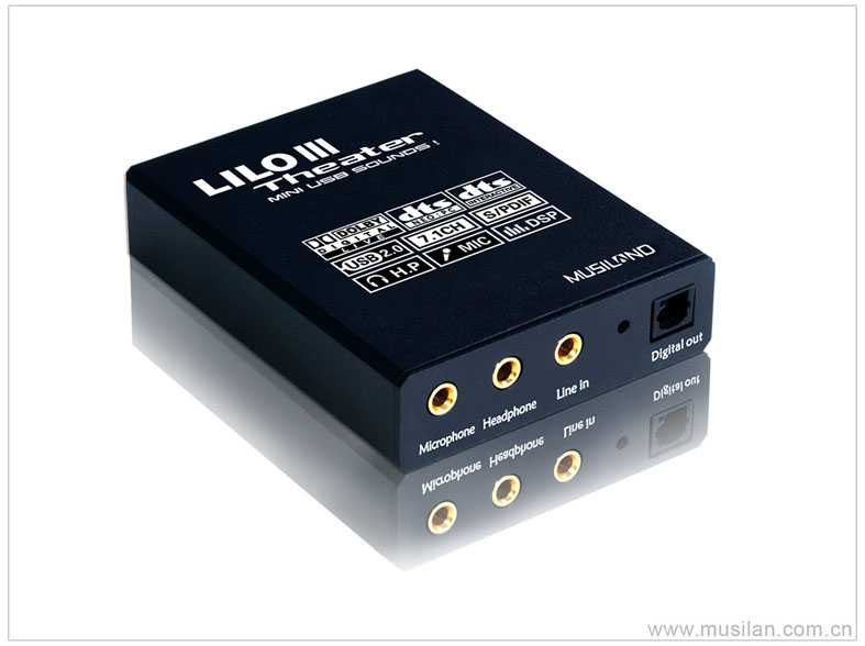 玲珑III 剧场是以高品质娱乐性为主的便携式USB 声卡产品,它具有丰富的接口和强大的功能,USB接口兼容USB1.0、1.1、2.0的标准,最高可达7.1声道的模拟输出。另外还具有耳机输出、麦克风输入、线路输入、光纤数字输出等功能。配合其强大的控制面板,能进行7.1 声道的独立调节,并设置20多种逼真的环境音效,十段均衡音色调节,方便用户连接各种档次和各种数量的耳机、音箱和家庭影院系统。