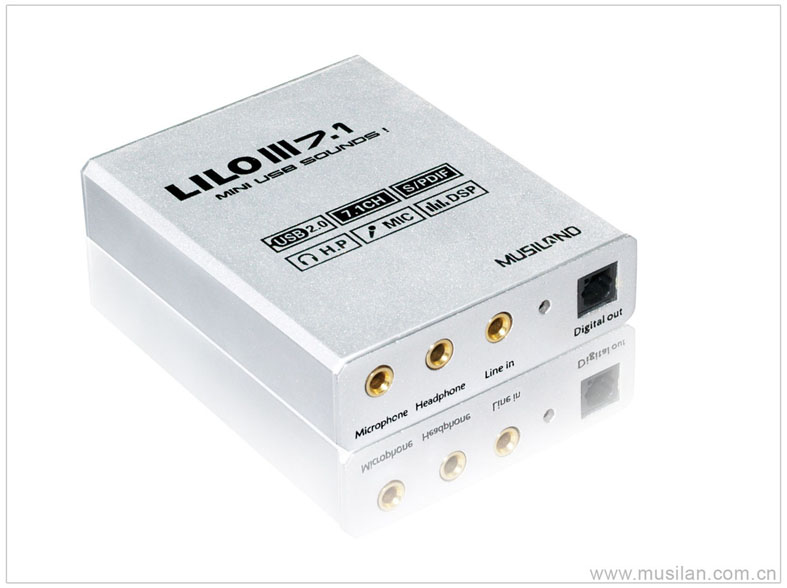 玲珑III 7.1是以高品质娱乐性为主的便携式USB 声卡产品,它具有丰富的接口和强大的功能,USB接口兼容USB1.0、1.1、2.0的标准,最高可达7.1声道的模拟输出。另外还具有耳机输出、麦克风输入、线路输入、光纤数字输出等功能。配合其强大的控制面板,能进行7.1 声道的独立调节,并设置20多种逼真的环境音效,十段均衡音色调节,方便用户连接各种档次和各种数量的耳机、音箱和家庭影院系统。