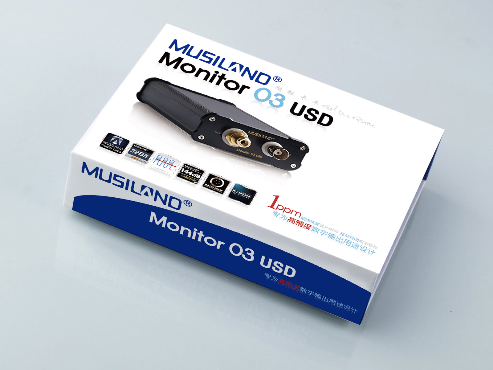 Monitor 03 USD声卡的RCA同轴数字输出、BNC同轴数字输出、光纤数字输出,支持MMDI接口,可以与MUSILAND的解码器进行无缝连接。