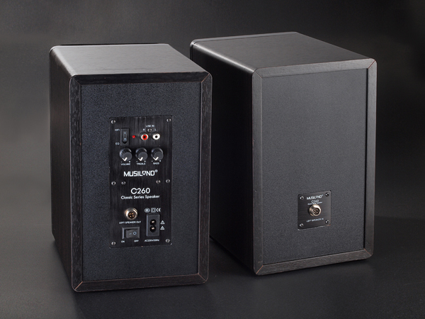 C260 具有HIFI直通切换开关,在HIFI档位,将跳开机内的高低音调节电路,提供HIFI品质的高保真音质。而在EQ档位,通过调节高低音调增益,可实现更全面的声音表现,可以适应电影和游戏对于高低频声音的特殊要求。简洁高效、低失真的功放设计,可以提供大于100dB的声音动态和信噪比,加上低失真、大功率的扬声器单元,足以应对APE、FLAC等高品质音乐文件对于音频系统性能的要求。震撼的低音、强解析的高音,保证了电影、游戏时的震撼效果。木质强化箱体、主副箱等容、功放左右声道独立放大等设计细节,让C260的立体声分离度远超越同类竞争产品,无论音乐、游戏、电影都有身临其境的声场和定位。在频响范围内平直的曲线响应,使得C260应用于桌面级监听箱,用来鉴赏音乐作品,也会变得得心应手。