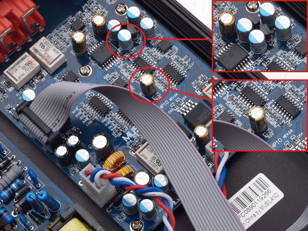 14颗超低ESR固态电容进行各部分电源滤波、退藕,保证电源纯净、充沛。 4颗nichicon面向高档音响而设计的Fine Gold系列音频电容,让声音更动听。