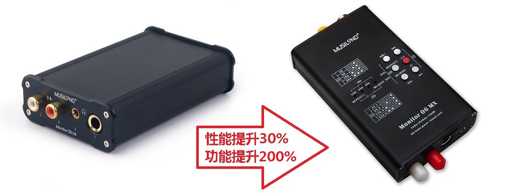 Monitor 06 MX与Monitor 03 US相比,性能提升30%,尤其是声音纯净度、声音细节和声音瞬态响应,及大功率驱动耳机时的失真,都有了质的提升。而功能则提升200%,不仅具备Monitor 03 US的全部功能,还可一秒钟变身为性能全球领先的高清音频播放器。
