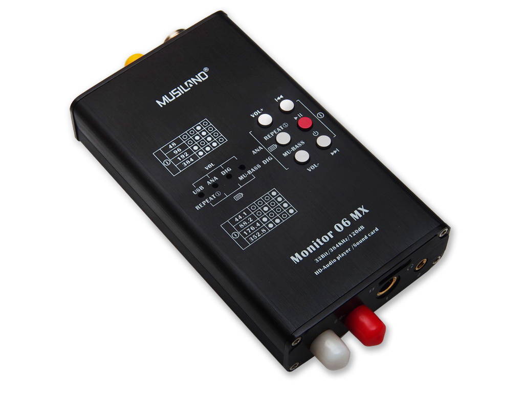 高保真的数字处理和模拟处理电路搭配无损的固件和驱动,让Monitor 06 MX无论作为声卡还是作为音频播放器,模拟输出都具有高保真的声音品质。两种模式均支持全世界领先的32Bit/384kHz的音频规格播放。