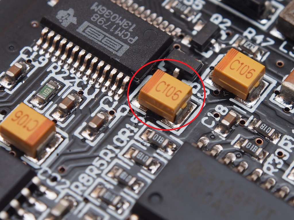 高品质钽电容进行模拟音频电路退耦,降低模拟电路之间的互相干扰。