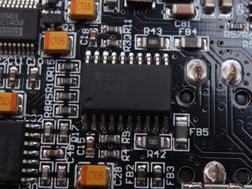 TI的PCM1798 音频DAC芯片,可以提供123dB的动态率和信噪比,以及0.001%的低失真。